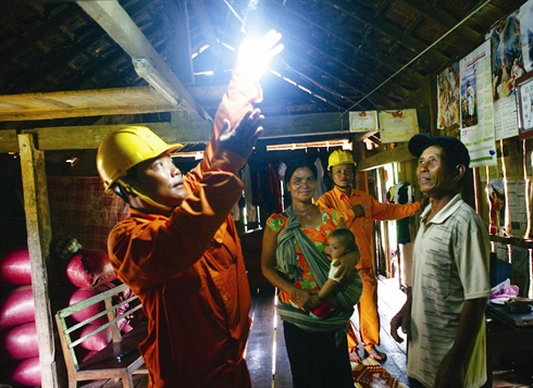 | Le Service d’électricité du Centre installe des ampoules basse consommation chez des familles à Gia Lai, sur les hauts plateaux du Centre. |