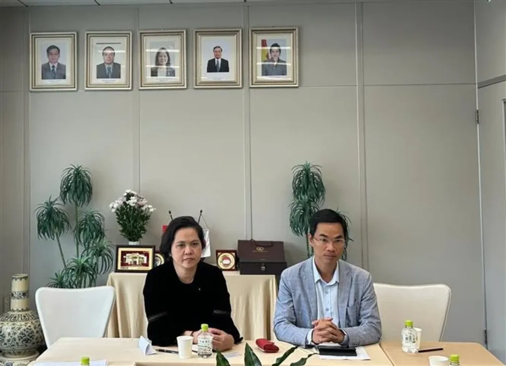 | La consule générale du Vietnam à Fukuoka, Vu Chi Mai, et le directeur adjoint du Centre national d'innovation du Vietnam, Dô Tiên Thinh. |