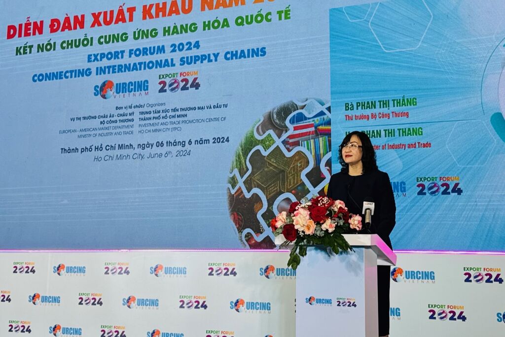 La vice-ministre a souligné que “le Forum de promotion de l'exportation 2024, ainsi que les colloques internationaux, les activités de connexion commerciale et le Vietnam International Sourcing Exhibition 2024, constituent une série d'événements organisés par le ministère de l'Industrie et du Commerce et le Comité populaire de Hô Chi Minh-Ville pour soutenir efficacement les entreprises dans leurs efforts pour participer plus profondément à la chaîne internationale de production et d'approvisionnement des marchandises, s'adapter à la tendance d'une intégration économique internationale de plus en plus poussée, ainsi que promouvoir les liens entre les canaux de distribution et les importateurs étrangers avec les entreprises manufacturières et exportatrices du pays”.