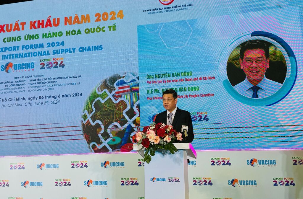 | Le vice-président du Comité populaire de Hô Chi Minh-Ville, Nguyên Van Dung, s’exprime lors du Forum de promotion de l'exportation 2024. |