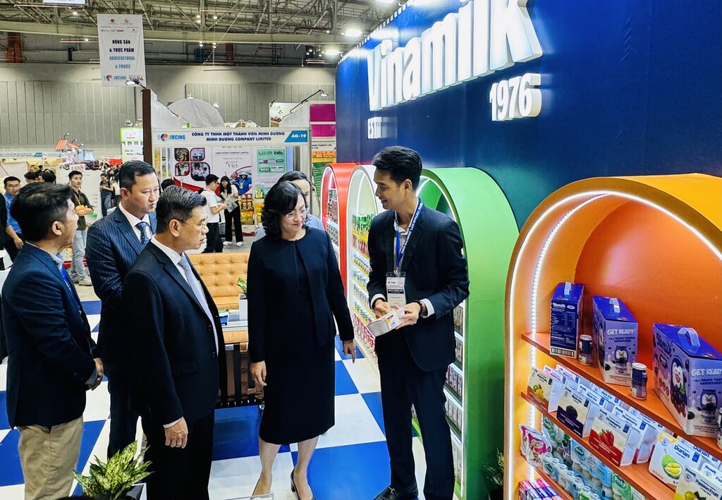 | Les dirigeants municipaux et centraux visitent le stand de Vinamilk lors de la Vietnam International Sourcing Exhibition 2024. |