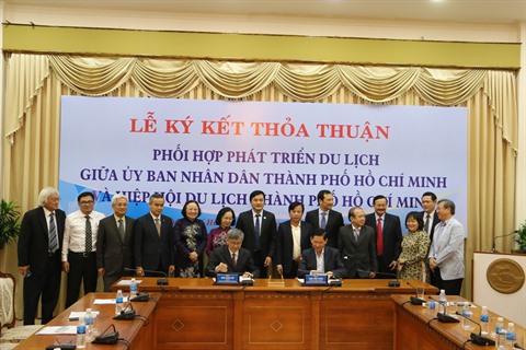 | Cérémonie de signature de l'accord de coopération entre le Comité populaire de Hô Chi Minh-Ville et l'Association municipale du tourisme. |