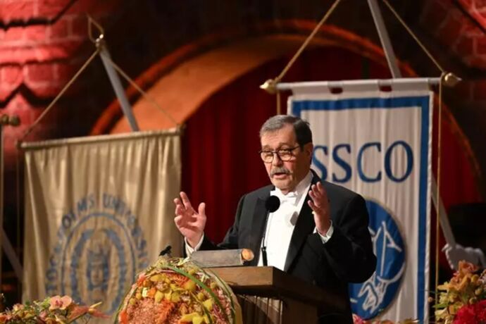 | Michel Devoret, prix Nobel de physique 2025, reçoit son prix à Stockholm, le 10 décembre. |