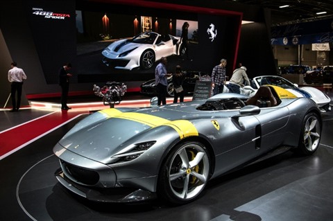 | Une Monza-SPI du constructeur Ferrari est exposée au Mondial de l'automobile à Paris le 4 octobre. |