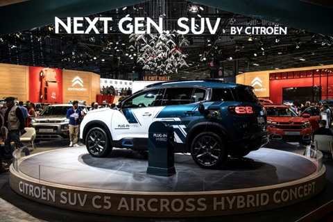 | L'hybride Citroen SUV C5 est exposée au Mondial de l'automobile le 4 octobre à Paris. |