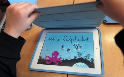 | Photo d'illustration d'un enfant de maternelle jouant avec une tablette à Haguenau (Bas-Rhin). |