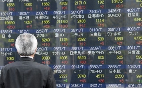 | Un homme regarde des indices de marché à Tokyo le 24 avril. |