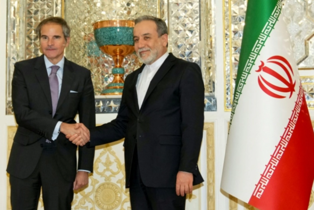 | Le ministre iranien des Affaires étrangères, Abbas Araghchi (droite) reçoit le directeur général de l'Agence internationale de l'énergie atomique (AIEA), Rafael Grossi, à Téhéran, le 16 avril. |