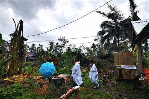 Plus d'une semaine après le passage du typhon qui a ravagé l'archipel le 16 décembre, faisant près de 400 morts et des centaines de milliers de sans-abris, les survivants s'accrochent à leur famille et à leur foi après que leurs maisons ont été balayées, et les festivités prévues annulées.