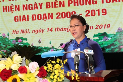 Nguyên Thi Kim Ngân a souligné les politiques du Parti et de l’État, leur positions pour le développement socioéconomique et la consolidation de la sécurité et de la défense des régions frontalières. "La Journée des gardes-frontières" est une juste position, témoignant de l’attention particulière du Parti et de l’État pour la protection de la souveraineté, de la sécurité des frontières nationales. Elle a aussi estimé les efforts des ministères, secteurs, les forces armées dans l’application de cette journée.
