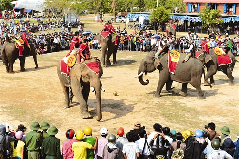 | Le village Dôn, berceau des éléphants du Tây Nguyên, organise chaque année impaire, au 3e mois lunaire, une course d’éléphants qui attirede nombreux touristes. |