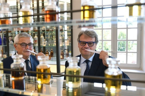 | Francois Demachy (g) de Dior et Jacques Cavallier-Belletrud, le "nez" de Louis Vuitton, au centre de création de parfums "Les Fontaines Parfumées" à Grasse le 15 septembre 2016. |
