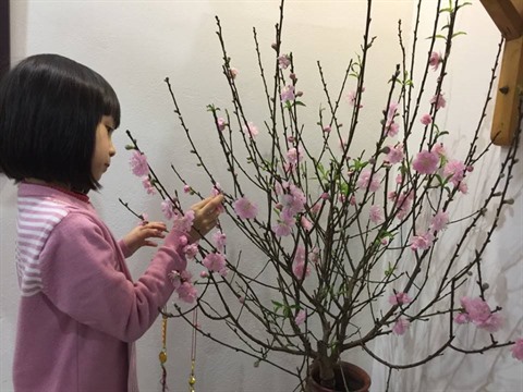 | Une branche de pêcher en fleurs dans le salon est indispensable pour chaque famille des Vietnamiens lors du Têt traditionnel. |