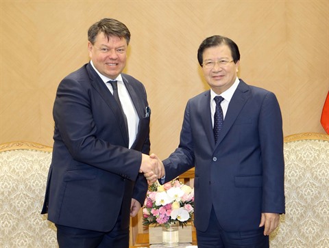 | Le vice-Premier ministre Trinh Dinh Dung (droite) et le secrétaire général de l'OMM, Petteri Taalas. |
