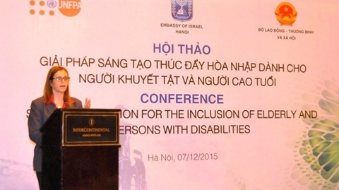 | Mme l’ambassadeur d'Israël, Meirav Elion Shahar, prend la parole lors du colloque «Solutions innovantes pour aider les personnes handicapées et âgées à mieux s'intégrer socialement», le 7 décembre à Hanoi. |
