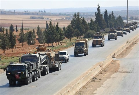 | Un convoi de forces turques sur une autoroute près de Saraqeb dans la province syrienne d'Idleb (Nord-Ouest), menacée d'une offensive de Damas, le 29 août. |