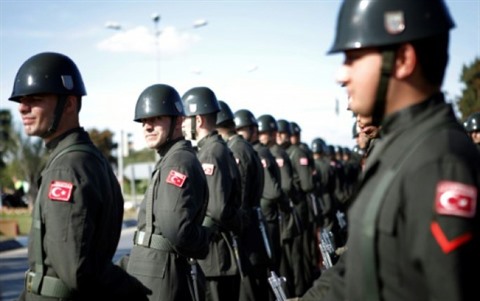 | Image d'archives prise le 15 novembre 2016, montrant des soldats turcs pendant une parade dans la partie nord de Nicosie. |