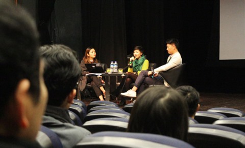 | Nguyên Ba Linh (au milieu) partage avec des étudiants ses expériences d'études en France. |