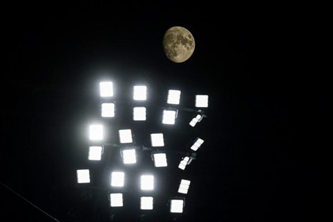 | Les lumières d'un stade avec la Lune en arrière-plan, le 7 septembre à Naples (Italie). |