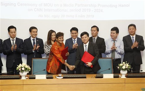 | Cérémonie de signature d'un protocole d'accord sur la coopération dans la présentation de Hanoï sur la chaîne CNN pour la période 2019-2024, le 20 mai dans la capitale. |