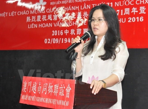 | La consule générale adjointe du Vietnam à Hong Kong et Macao, Vu Chi Mai, à la cérémonie de célébration de la Fête nationale. |