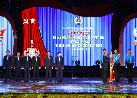 | Le Premier ministre Nguyên Xuân Phuc offre l'Ordre Hô Chi Minh à la Confédération générale du travail du Vietnam. |