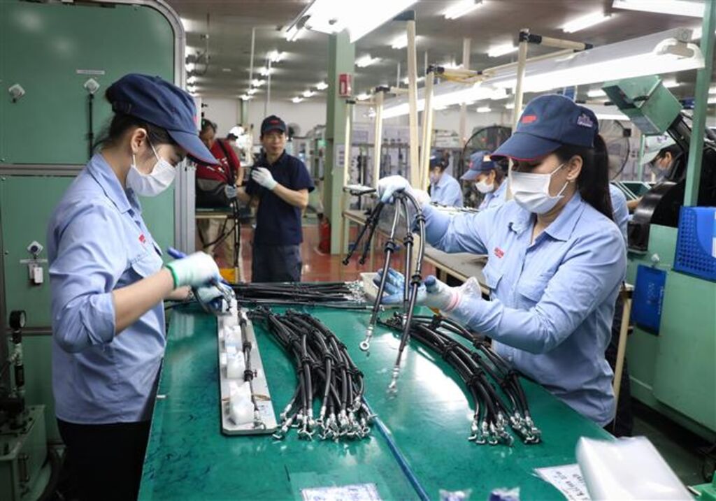 | Production d'accessoires automobiles et de motos de la compagnie Nichirin Vietnam dans le parc industriel de Quang Yên, province de Bac Giang (Nord). |