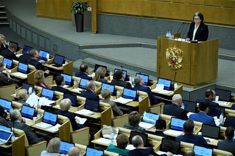 | Une séance plénière à la Douma d'État sur les amendements constitutionnels, le 10 mars à Moscou. |
