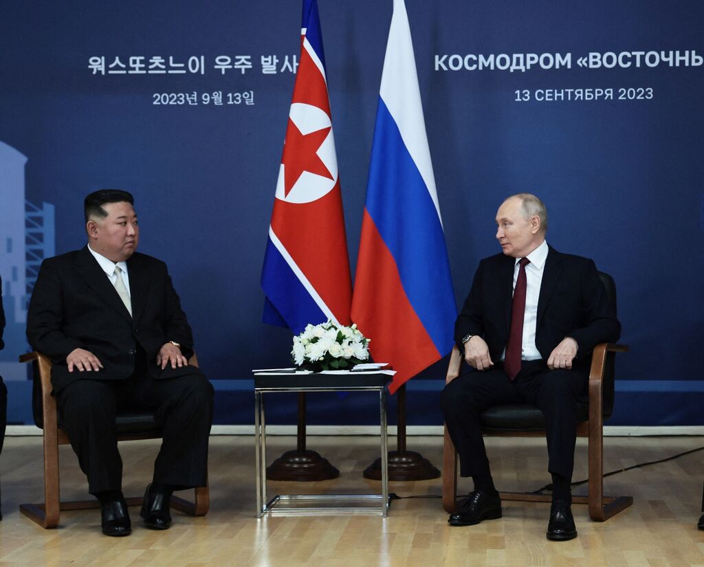 | Le dirigeant de la RPDC, Kim Jong Un (gauche), et le président russe Vladimir Poutine, le 13 septembre au cosmodrome Vostotchny. |