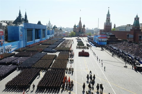 | Des soldats russes sur la Place Rouge lors du défilé militaire du jour de la victoire à Moscou, le 9 mai 2015. |