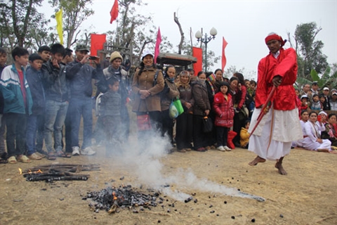 Pour cette danse, un feu est allumé, symbole des difficultés et autres dangers menaçant la vie paisible et tranquille des villageois. Armé d’une épée ou d’un fouet, le danseur manifeste les efforts et la détermination à surmonter toutes les difficultés en éteignant le feu pieds nu.
