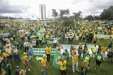 Des partisans du président brésilien Jair Bolsonaro rassemblés à Brasilia, le 15 mars