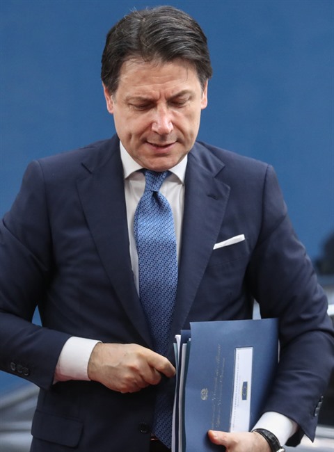 | Le Premier ministre italien Giuseppe Conte, à Bruxelles le 21 février. |