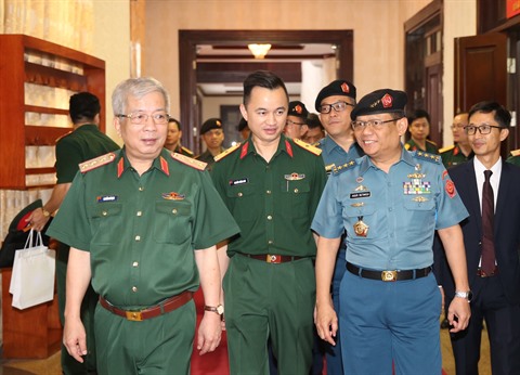 | Le vice-ministre vietnamien de la Défense, Nguyên Chi Vinh (gauche), et le secrétaire général du ministère indonésien de la Défense, Agus Setiadji, le 25 juin à Hanoï. |