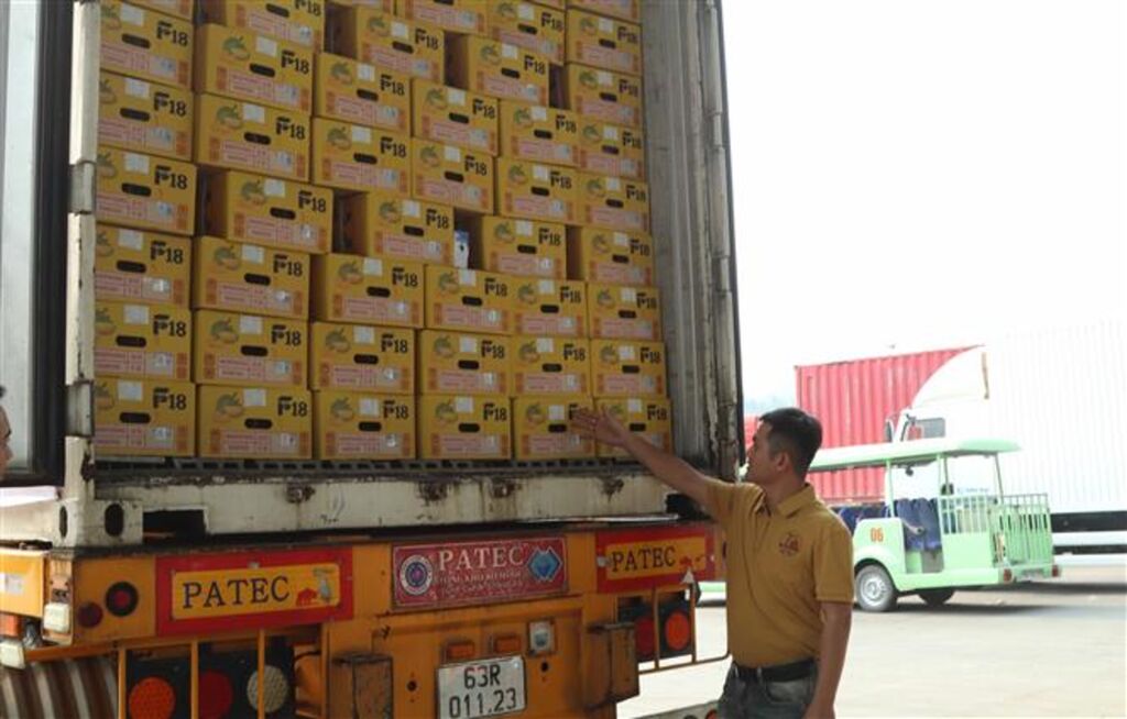 | Les conteneurs de durians frais exportés du Vietnam vers la Chine sont soumis à un système de traçabilité complet, au poste-frontière international de Huu Nghi, province de Lang Son. |