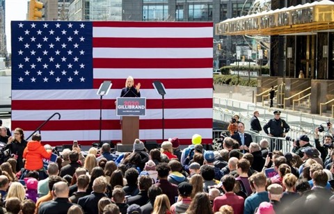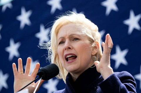 | Kristen Gillibrand en meeting à New York, le 24 mars. |