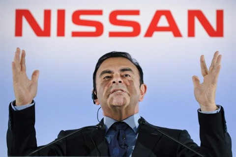 | L'ex-patron de Nissan Carlos Ghosn lors d'une conférence de presse au siège de l'entreprise automobile à Yokohama, près de Tokyo, le 11 mai 2012. |