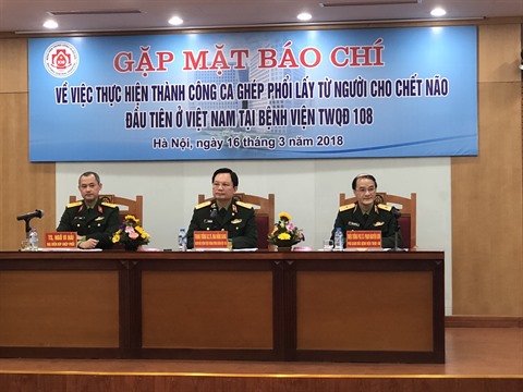 | Conférence de presse sur la première greffe pulmonaire à partir de donneur en mort cérébrale, le 16 mars à Hanoï. |