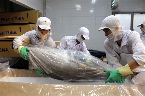 | Emballage des thons pour l'exportation au Japon. Photo : Ly Kha/VNA/CVN |