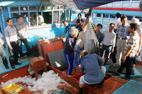 | Les premiers thons pêchés à Binh Dinh (Centre) grâce à des technologies modernes transférées par le Japon. |