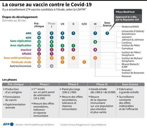 Le gouvernement britannique est le premier à approuver l'utilisation massive du vaccin américano-allemand, qui répond à des "normes strictes de sécurité, de qualité et d'efficacité" et sera disponible la semaine prochaine dans le pays le plus endeuillé d'Europe avec près de 60.000 morts.