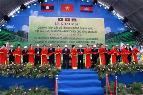 | La cérémonie d'ouverture de la première rencontre d’amitié des agriculteurs Vietnam - Laos - Cambodge à Dà Lat. Photo : VNA/CVN |