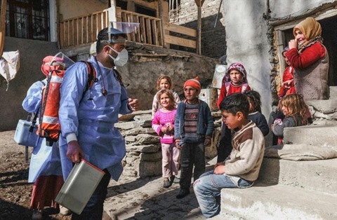| Une équipe de vaccination à la rencontre de la population dans le village de montagne de Guneyyamac (Turquie), le 15 février. |
