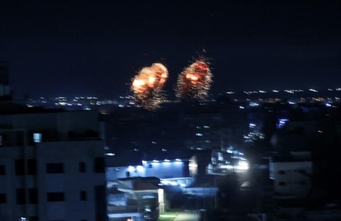 | Explosions à Gaza dans la nuit du 16 juin. |