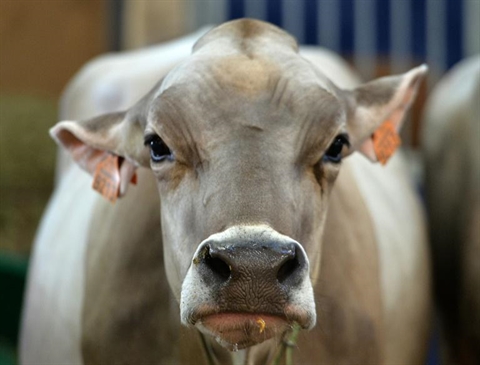 | Une charolaise présentée au concours de race du Salon en 2015 à Rennes. |
