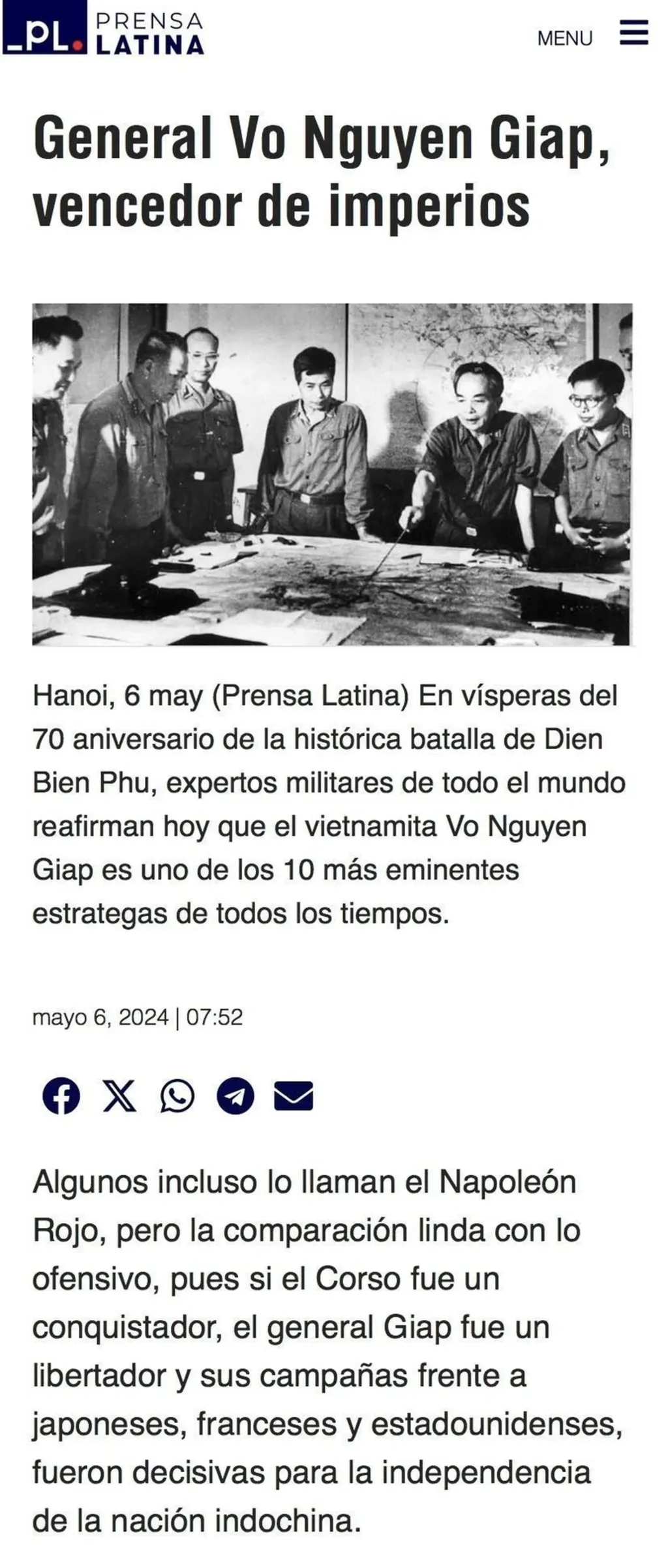 Cette bataille a non seulement culminé une guerre de résistance de neuf ans, mais elle a également constitué, à bien des égards, une base théorique et pratique solide pour les batailles que le Vietnam avait encore à mener, a écrit la Prensa Latina.