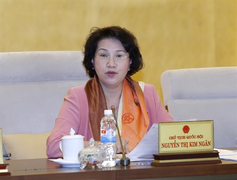 | La présidente de l'Assemblée nationale (AN), Nguyên Thi Kim Ngân, à l'ouverture de la 47e réunion du Comité permanent de l'AN, le 25 avril. |