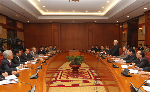 Il a également demandé au conseil de lutter résolument et de rejeter catégoriquement les points de vue erronés et hostiles, notamment sur les questions concernant le Programme politique, la Constitution et les politiques fondamentales du Parti... , précisant qu'il s'agit d'une lutte de longue haleine.