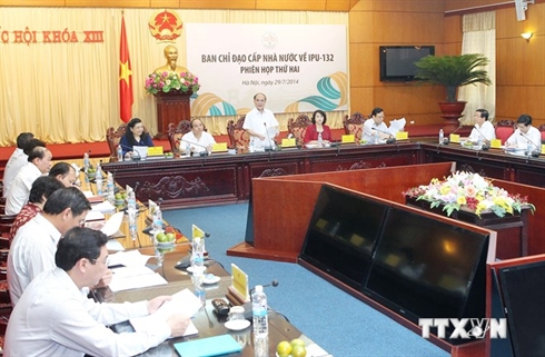 | La 2e séance du Comité d'organisation de la 132e Assemblée générale de l'Union interparlementaire (UIP-132), le 29 juillet à Hanoi. |