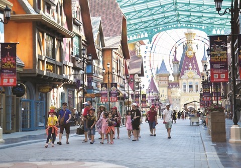 | Un coin de rue au style architectural européen dans le parc VinWonders Phu Quôc. |